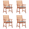 1 kép vidaXL 4 darab tömör akácfa kültéri étkezőszék párnával