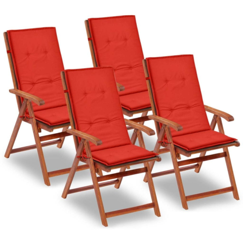 1 kép vidaXL 4 darabos kerti szék-párnaszett piros színben 120x50x3 cm