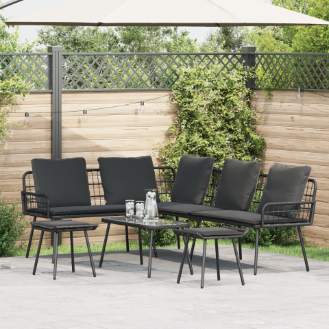 Teljes vidaXL 4 darabos kültéri kanapé szett párnákkal Fekete Poli Rattan termékleírás
