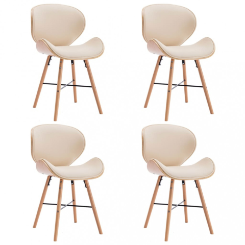 2 kép vidaXL 4 db krémszínű műbőr és hajlított fa étkezőszék