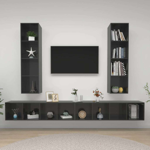 Teljes vidaXL 4 db magasfényű szürke forgácslap fali TV-szekrény termékleírás
