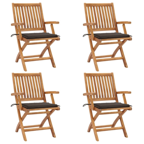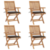 1 kép vidaXL 4 db összecsukható tömör tíkfa kerti szék párnákkal