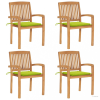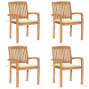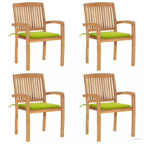 Teljes vidaXL 4 db rakásolható tömör tíkfa kerti szék párnákkal termékleírás