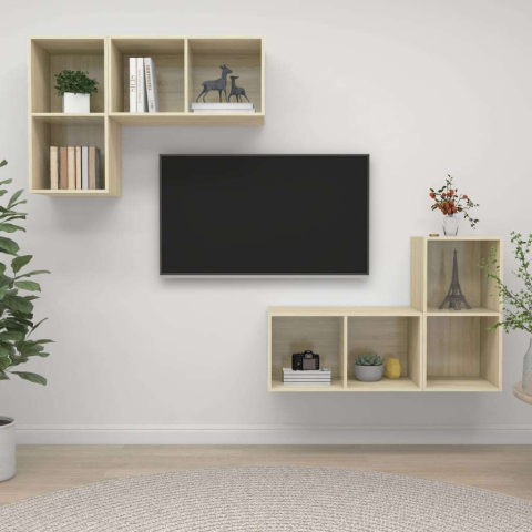 Teljes vidaXL 4 db tölgyszínű forgácslap falra szerelhető TV-szekrény termékleírás