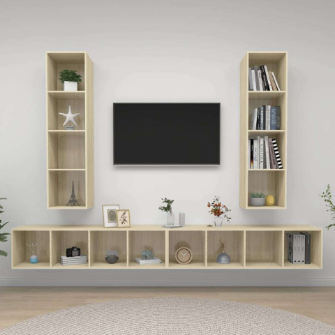 1 kép vidaXL 4 db tölgyszínű forgácslap falra szerelhető TV-szekrény