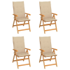 1 kép vidaXL 4 db tömör tíkfa kerti szék bézs párnákkal