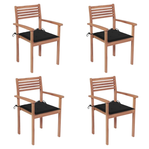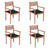 Teljes vidaXL 4 db tömör tíkfa kerti szék fekete párnával termékleírás
