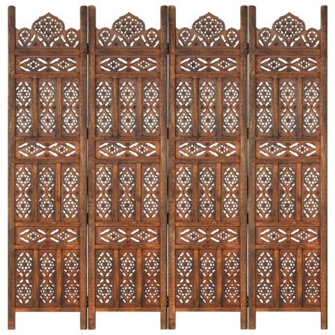 Teljes vidaXL 4-paneles barna mangófa kézzel faragott térelválasztó 160x165cm termékleírás