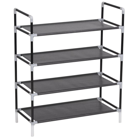 Ez a minimalista cipőtartó állvány ideális megoldást kínál cipői tárolására. Cső alakú fémvázzal rendelkezik, mely könnyűsúlyú, ámbár strapabíró, így a cipőtartó rendkívül könnyen mozgatható és időtálló. Négy nagyméretű polccal van felszerelve, melyek nemszőtt textíliából készültek és bőséges helyet kínálnak cipői rendezett tárolására. Könnyen összeszerelhető.
