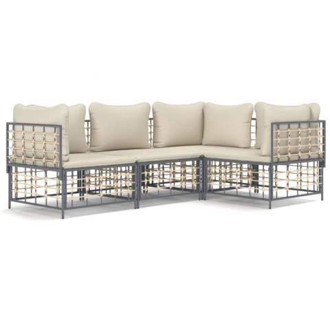 Teljes vidaXL 4-részes antracitszürke polyrattan kerti ülőgarnitúra párnákkal termékleírás