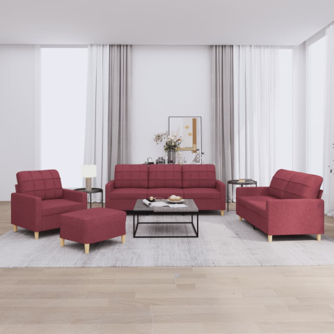 Teljes vidaXL 4 részes bordó szövet ülőgarnitúra párnákkal termékleírás