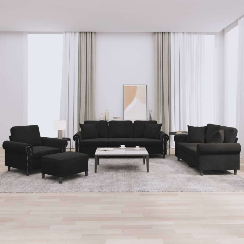 Teljes vidaXL 4 részes fekete bársony ülőgarnitúra párnákkal termékleírás