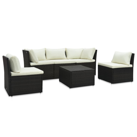 Teljes vidaXL 4-részes fekete polyrattan kerti bútorszett párnákkal termékleírás