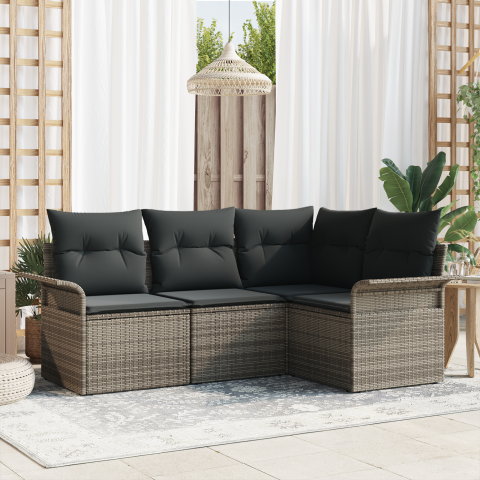 Teljes vidaXL 4 részes kertibútor szett párnákkal, szürke poli rattan termékleírás