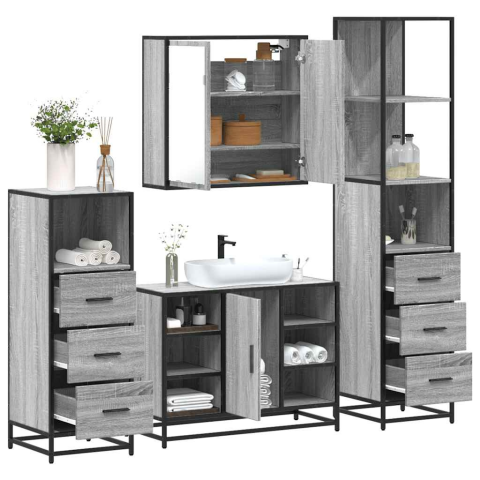 1 kép vidaXL 4 részes szürke sonoma színű szerelt fa fürdőszobai bútorszett