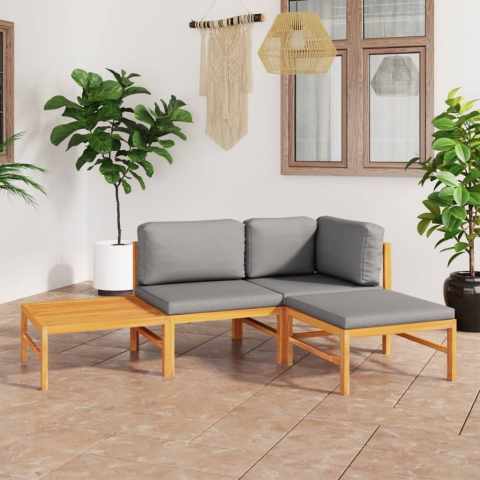 Teljes vidaXL 4 részes tömör tíkfa kerti ülőgarnitúra szürke párnákkal termékleírás