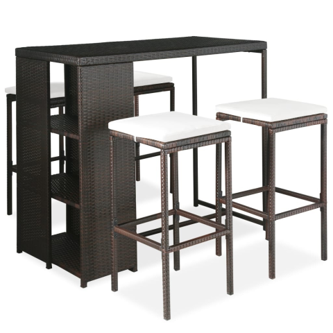 Teljes vidaXL 5 darabos barna polyrattan kerti bárszett párnákkal termékleírás