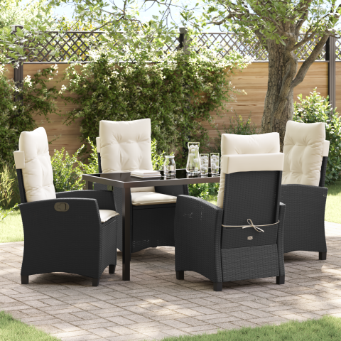 Teljes vidaXL 5 darabos kert étkezőasztal szett párnákkal fekete poli rattan termékleírás