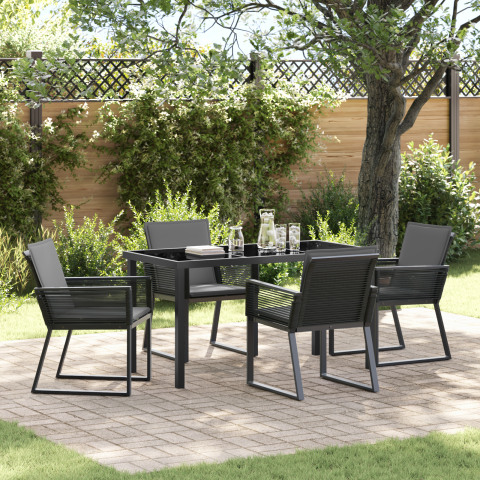 Teljes vidaXL 5 Darabos Kerti Étkezős Készlet Párnákkal Fekete Poli Rattan termékleírás