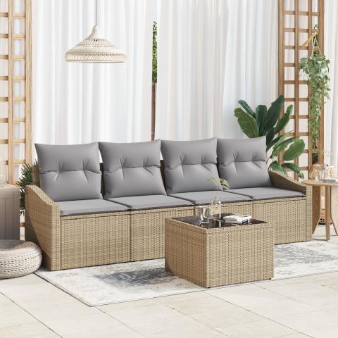 vidaXL 5 darabos Kerti Étkezőszett Párnákkal Bézs Polirattan kerti bútor termékleírás