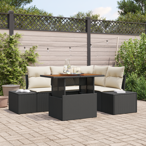 Teljes vidaXL 5 darabos kerti kanapé szett párnákkal fekete poli rattan termékleírás