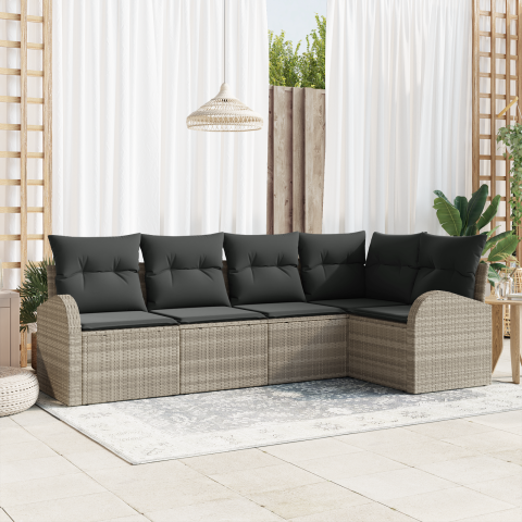 Teljes vidaXL 5 darabos kerti kanapé szett párnákkal, világosszürke poli rattan termékleírás