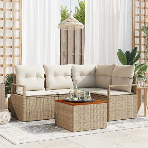 Teljes vidaXL 5 darabos kertkanapé szett párnákkal Bézs Poli Rattan Akác termékleírás