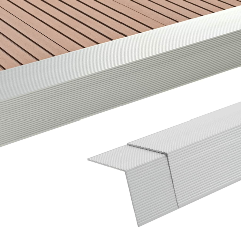 Legyen a WPC burkolat pereme is tökéletes ezekkel az alumínium teraszburkoló sarokprofilokkal! A terasz széleit egyszerűen lezárhatja és tömítheti az elegáns megjelenésű sarokprofilok segítségével. Az L-profilok (a lépcsőétől elütő színben) lépcső élvédőként is használhatóak, jól láthatóvá téve a lépcsőfokok szélét. Ezek a kiváló minőségű alumíniumból készült teraszburkoló sarokprofilok időjárás- és korrózióállóak, így rendkívül tartó