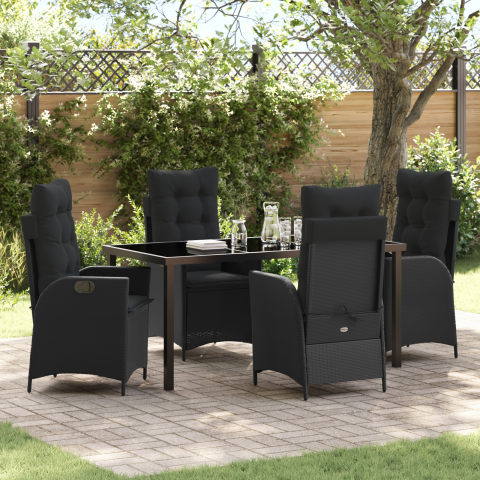 Teljes vidaXL 5 db-os Kerti Étkező Szett Párnákkal Fekete Polirattan termékleírás