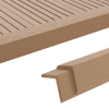 Legyen a terasz pereme is tökéletes ezekkel a teraszburkoló sarokprofilokkal! A terasz széleit egyszerűen lezárhatja és tömítheti az elegáns megjelenésű sarokprofilok segítségével. Az L-profilok (a lépcsőétől elütő színben) lépcsőfok-élvédőként is használhatóak, jól láthatóvá téve a lépcsőfokok szélét. E kiváló minőségű fa-műanyag kompozitból (WPC) készült teraszburkoló sarokprofilok víz- és időjárásállóak. A fa és műanyag kombinációjá