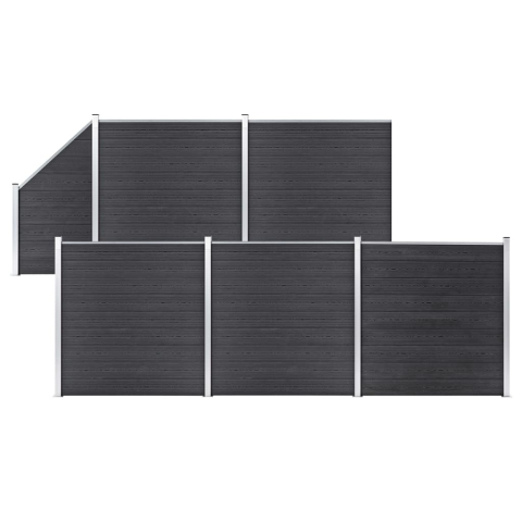 1 kép vidaXL 5 négyszögletes és 1 ferde szürke WPC kerítéselem 965 x 186 cm