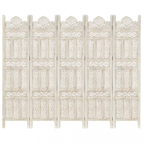 vidaXL 5-paneles fehér mangófa kézzel faragott térelválasztó 200x165cm