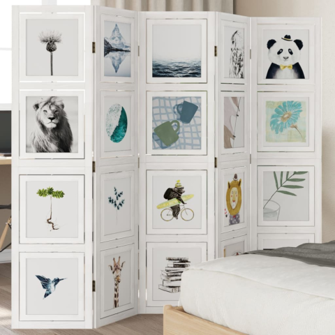 vidaXL 5 paneles fehér tömör császárfa térelválasztó bútor 1 kép
