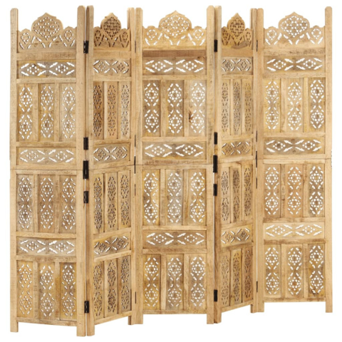 1 kép vidaXL 5-paneles tömör mangófa kézzel faragott térelválasztó 200x165cm