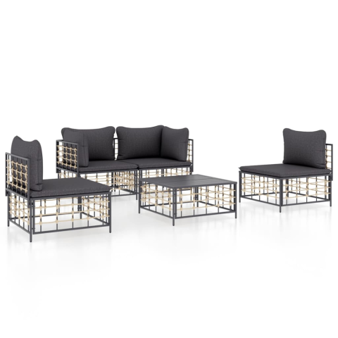 vidaXL 5-részes antracitszürke polyrattan kerti ülőgarnitúra párnákkal