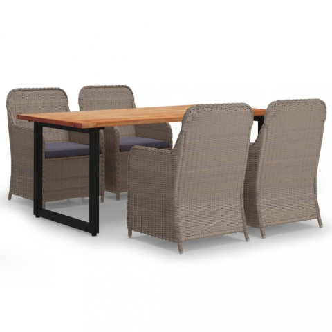 Teljes vidaXL 5 részes barna polyrattan kerti étkezőgarnitúra párnákkal termékleírás