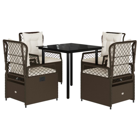 1 kép vidaXL 5 részes barna polyrattan kerti étkezőgarnitúra párnákkal (3262979)