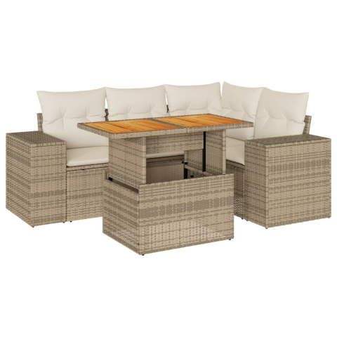 Teljes vidaXL 5 részes bézs polyrattan kerti ülőgarnitúra párnákkal (3327369) termékleírás