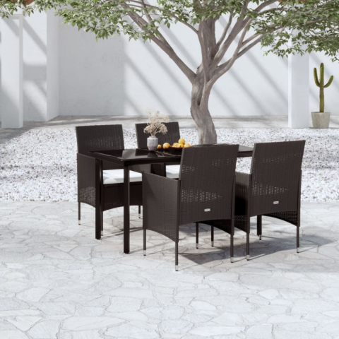 Teljes vidaXL 5 részes fekete kerti étkezőgarnitúra párnákkal termékleírás