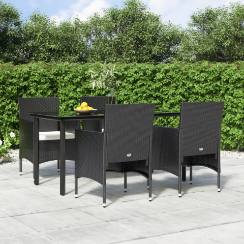 Teljes vidaXL 5-részes fekete kerti étkezőgarnitúra párnákkal termékleírás