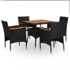 Teljes vidaXL 5 részes fekete kültéri polyrattan és akácfa étkezőszett termékleírás