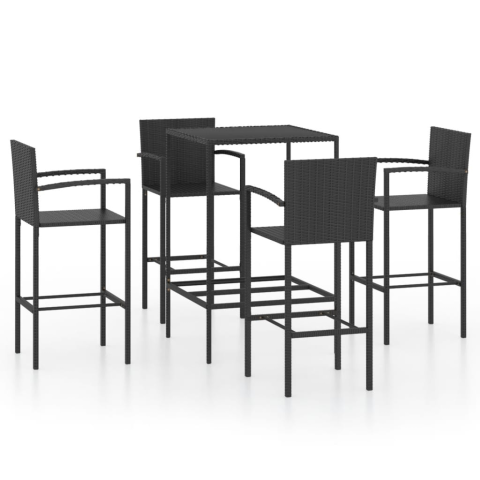 Teljes vidaXL 5 részes fekete polyrattan kerti bárszett termékleírás