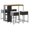vidaXL 5 részes fekete polyrattan kerti bárszett párnával (3261497)