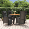 Teljes vidaXL 5 részes fekete polyrattan kerti étkezőgarnitúra párnákkal termékleírás