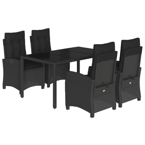 1 kép vidaXL 5 részes fekete polyrattan kerti étkezőgarnitúra párnákkal (3212638)