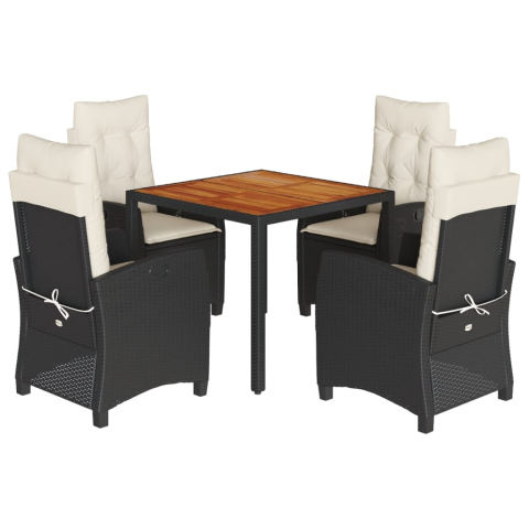 1 kép vidaXL 5 részes fekete polyrattan kerti étkezőgarnitúra párnákkal (3212654)