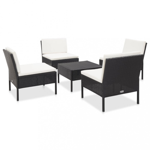vidaXL 5-részes fekete polyrattan kerti kanapészett párnákkal kerti bútor termékleírás