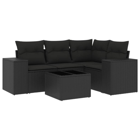 1 kép vidaXL 5 részes fekete polyrattan kerti kanapészett párnákkal (3222514)
