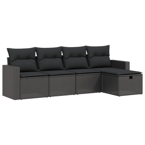 Teljes vidaXL 5 részes fekete polyrattan kerti kanapészett párnákkal (3263461) termékleírás