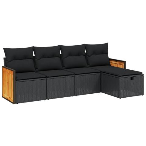 vidaXL 5 részes fekete polyrattan kerti kanapészett párnákkal (3265717) kerti bútor termékleírás